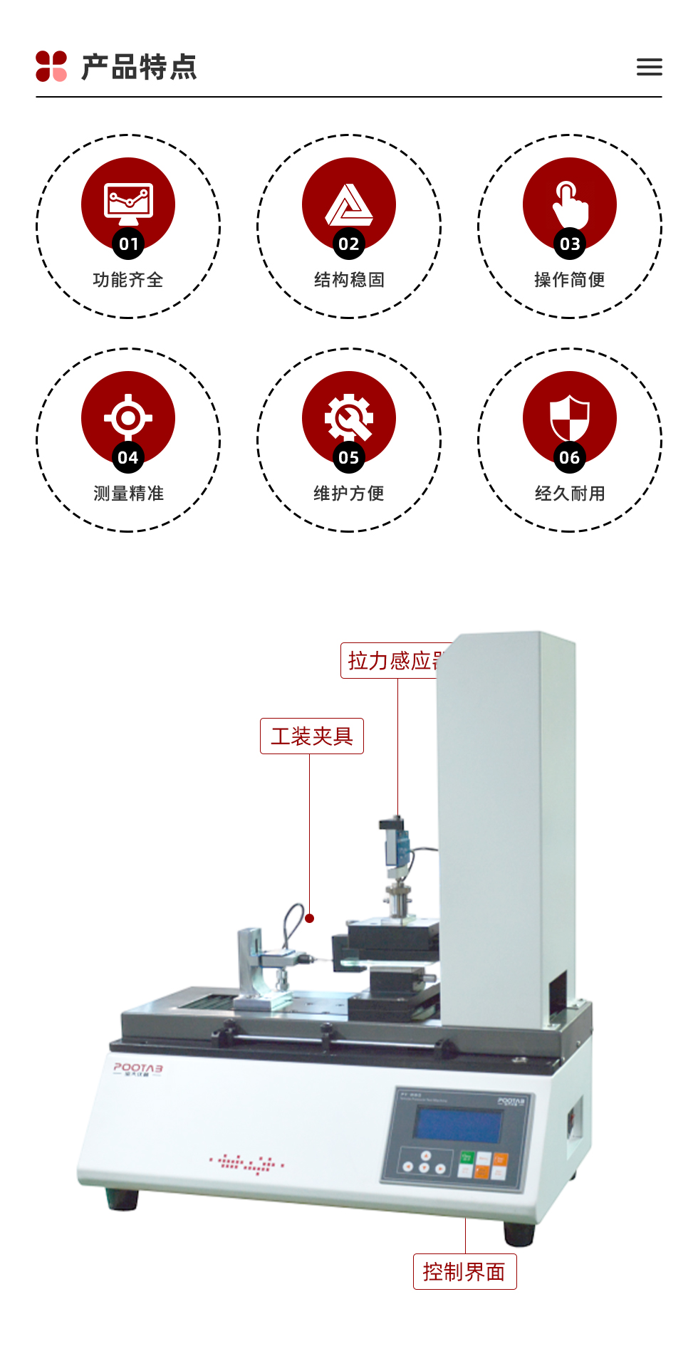 數(shù)據(jù)指標(biāo):測(cè)力準(zhǔn)確度優(yōu)于±0.5%
