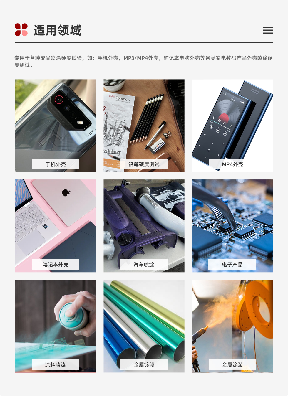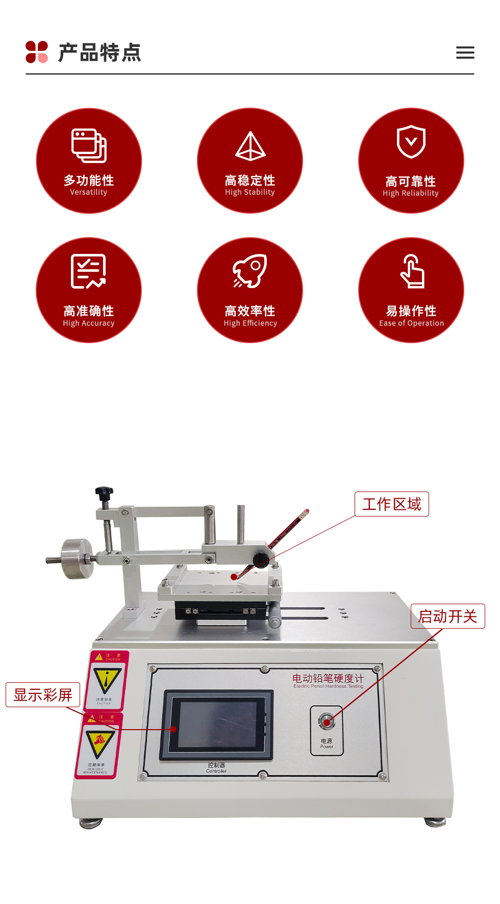 專用于各種成品噴涂硬度試驗,如:手機外殼,MP3/MP4外殼,筆記本電腦外殼等各類家電數(shù)碼產(chǎn)品外殼噴涂硬度測試。機器為電動(半自動)控制,機器通過一個步進電機運動過傳動,實現(xiàn)前后動作,噪聲小,穩(wěn)定。測試行程依具體要求可調(diào)。