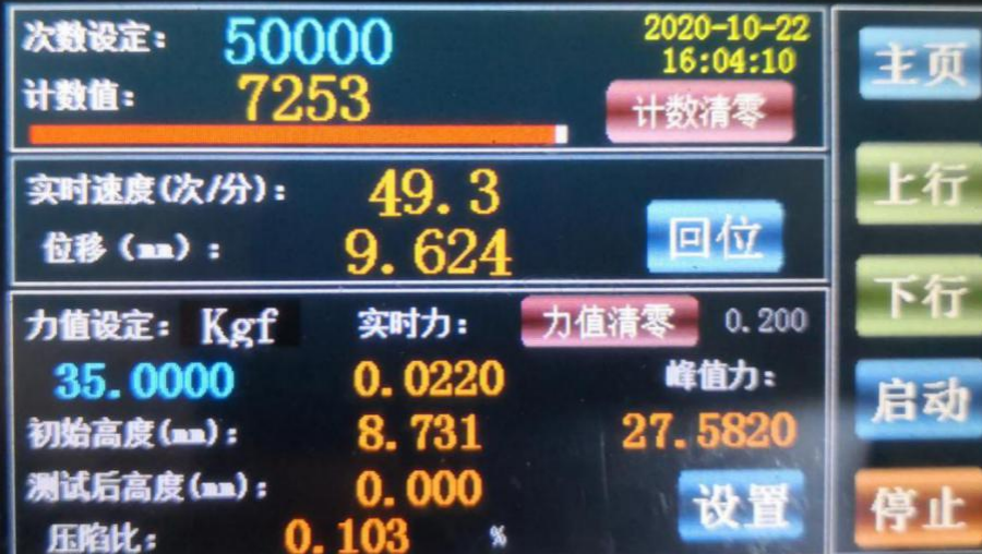 u 本測試用于測量發(fā)泡材料或中底材料在施加一定力量上下來回條件下,動態(tài)往返壓縮后回復原厚度的能力。