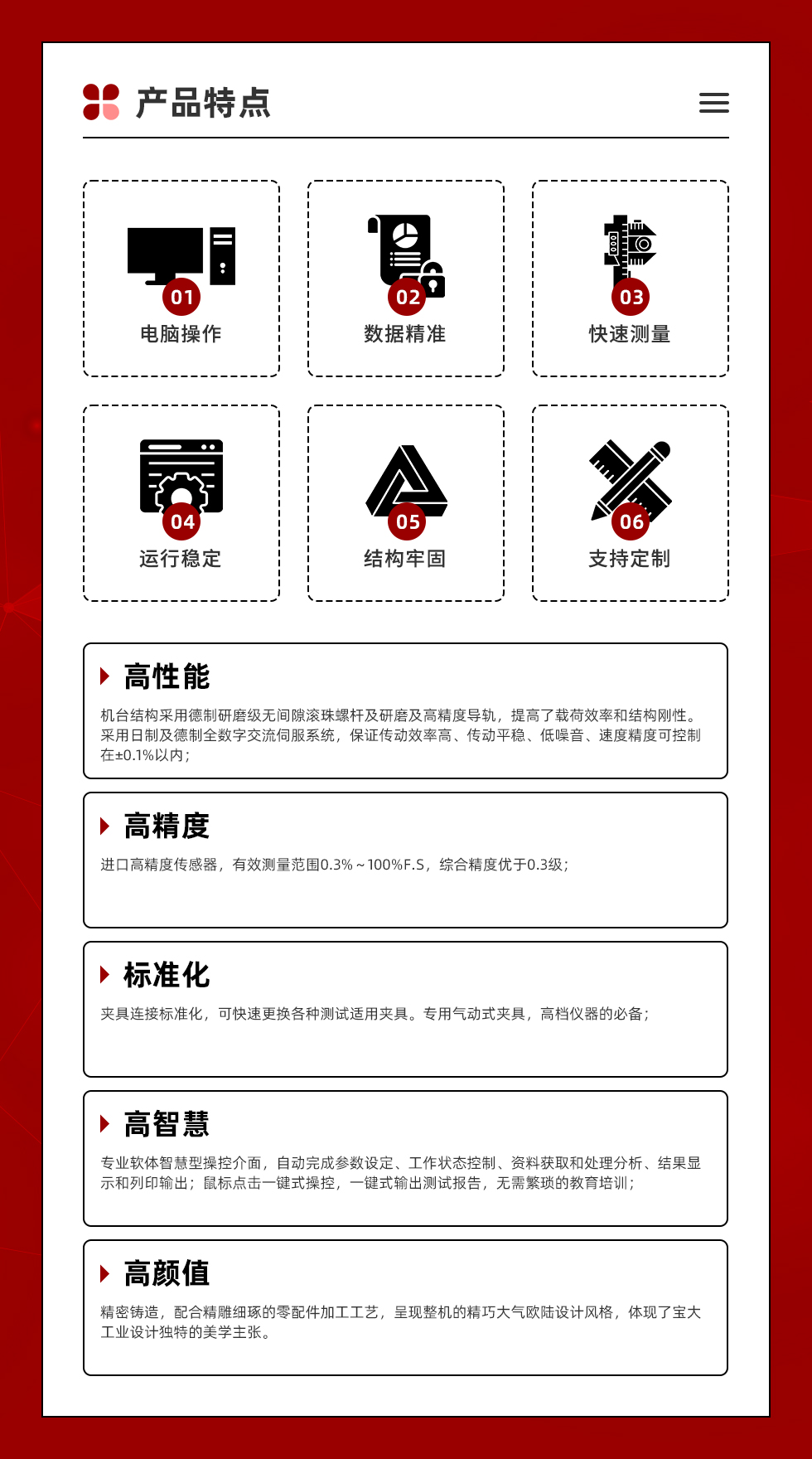 數(shù)據(jù)指標:具有優(yōu)于0.3級的綜合精度和高速度控制能力